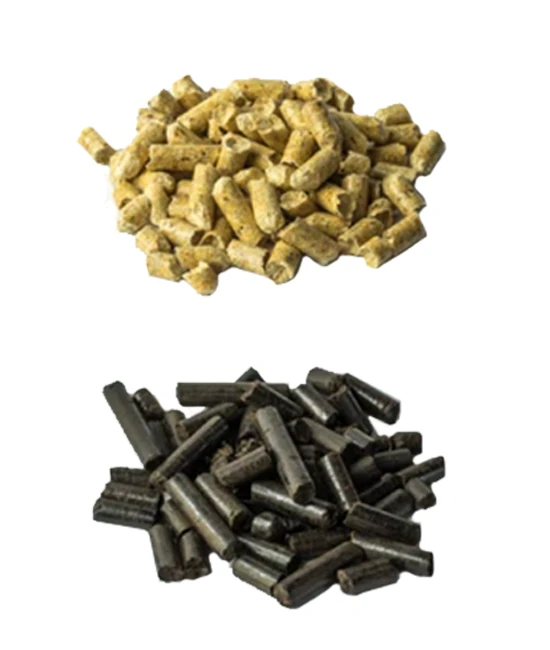 These black or dark-brown pellets are hydrophobic, carbon-rich, and deliver superior energy output compared to traditional white biomass pellets.